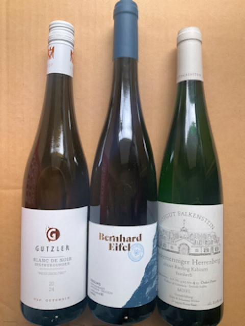モーゼルのリースリングとグラウアーブルグンダー、バーデンのシュペートブルグンダーの3本です。
